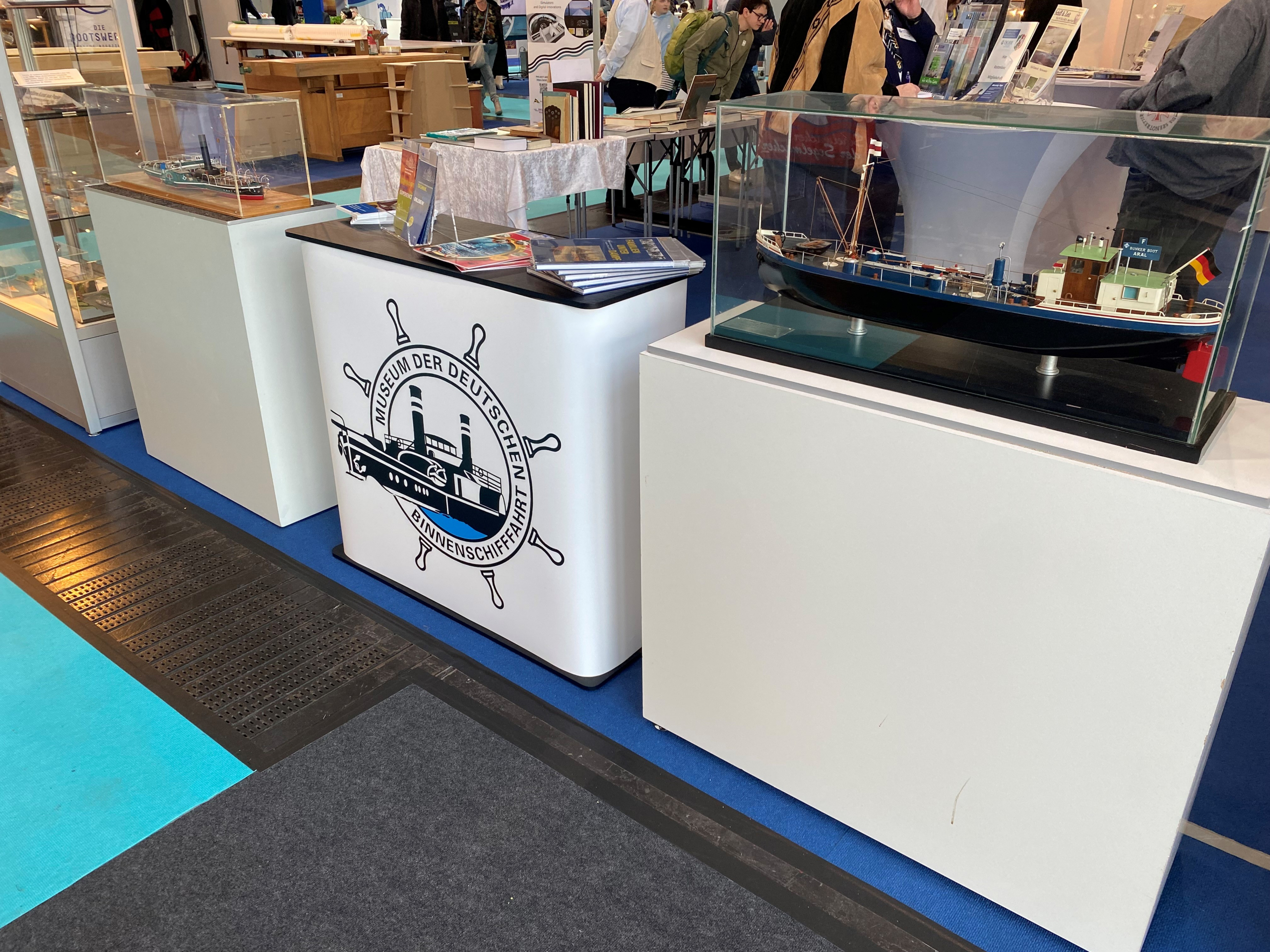 Dank an die Deutsche Gesellschaft für Schifffahrts- und Marinegeschichte, an deren Stand wir erneut in der Halle 14, H18, vertreten sein durften. Wir konnten unser Haus, unsere Fördergesellschaft und auch unsere Kooperation mit der IGA 2027 – Der Internationalen Gartenausstellung im kommenden Jahr im Ruhrgebiet – gut präsentieren, viel Werbung für die vielfältigen Angebote des Binnenschifffahrtsmuseums in Ruhrort machen, weitere Kontakte für mögliche Zusammenarbeiten knüpfen, unser Netzwerk erweitern und zahlreiche Gespräche führen.